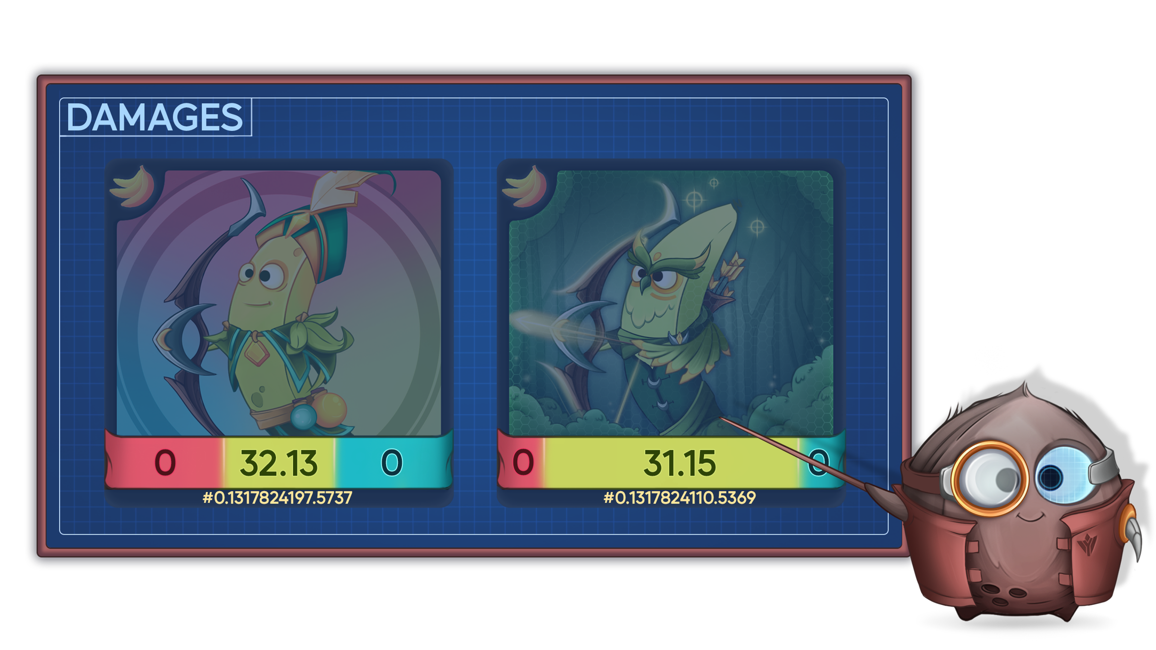 Arguably, the most crucial aspect of a Banana Set. The damage output determines match outcomes and can be pivotal in converting your NFT wins into lucrative gains. The damage numbers representing a sum of 4 item NFT damages comprised in the particular set.