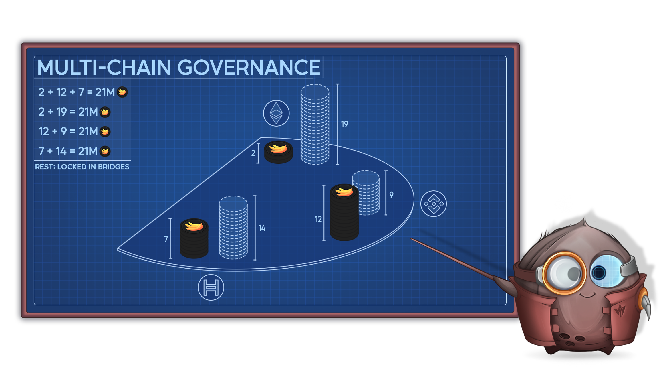 To achieve this, we'll use our Hedera Gov Token (HTS) as a "base" 21M and upon every new network connections, the 21M of tokens on a new network will be minted directly into the cross-chain bridge.